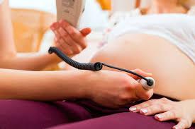 No exame obstétrico, é realizada palpação dos contornos fetais entre as contrações para verificar a posição do bebê. Nele também são medidas a altura uterina, a circunferência abdominal e os batimentos cardíacos da gestante e do bebê.